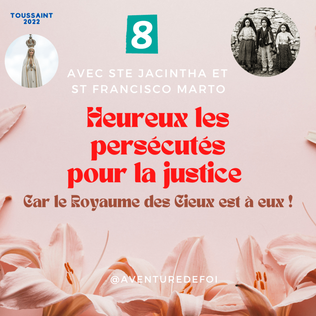 Loin de se complaire dans le malheur, cette béatitude, illustrée par le témoignage des bergers de Fatima et de tous les autres voyants d’apparitions mariales, est remplie d’espérance. Ça n’est pas seulement une vertu de l’avenir mais du présent. Comme l’escalade d’une montagne, le bonheur est la somme des petits pas d’aujourd’hui qui nous conduisent vers le sommet à venir.