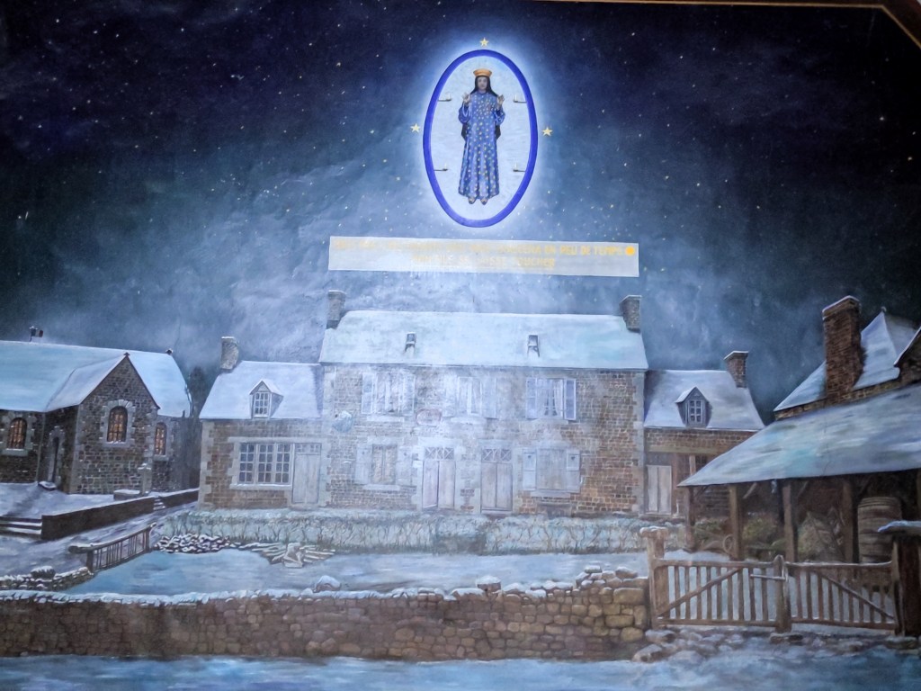 Pontmain en 1871 c’est un peuple troublé, qui vit dans la peur, dans l’angoisse de la guerre franco-prussienne, des épidémies et de la mort. Mais c’est aussi un peuple avec la foi, soutenu par leur curé l’abbé Guerin qui les invitait toujours à prier. Et à Pontmain on priait avec ferveur le chapelet tous les jours.