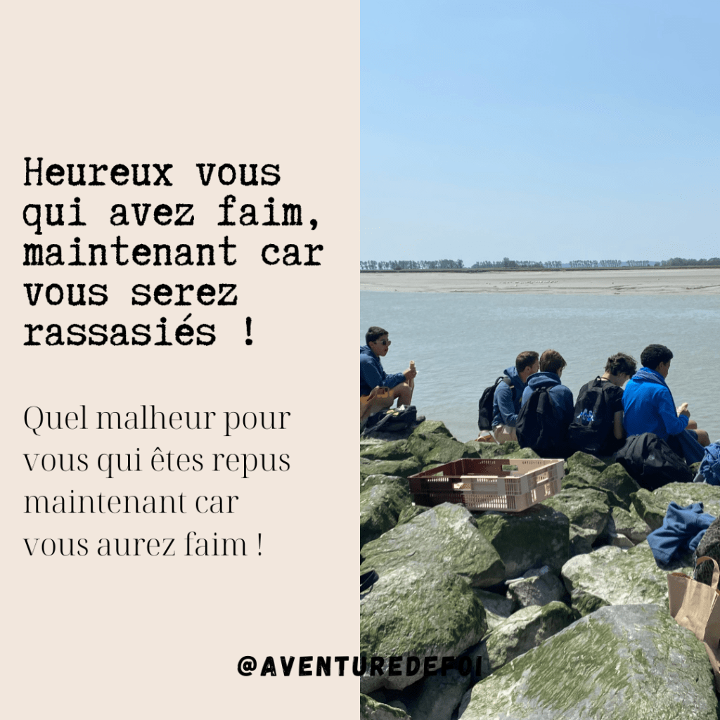 Attention tout de même : Jésus ne glorifie pas la faim, lui-même a nourri les foules avant de les renvoyer, sur les bords du Lac Tibériade. De même, il n’est pas bon pour l’Homme de vivre un jeûne permanent, vivre la faim à son extrême pour perdre du poids, pour se diminuer, pour un idéal politique … Fuir la faim est tout à fait normal, on ne pourrait refuser notre plat préféré sans urgence absolue mais quelle voie dangereuse si on va jusqu’à y risquer sa vie, sa dignité, sans donner à Jésus la capacité de combler ces faims.