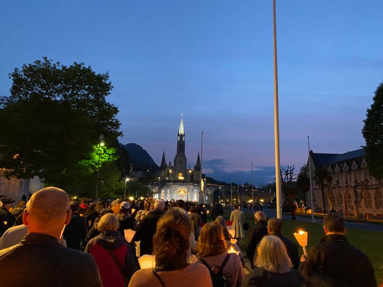 Et que fait Marie quand Elisabeth reconnaît en elle l’accomplissement de la Parole de Dieu ? Elle proclame Magnificat, elle rend la gloire à Dieu. Marie ne garde rien pour elle, elle donne tout à Dieu. C’est ainsi qu’elle avance dans son pèlerinage de foi (Lumen Gentium, 58) en suivant Jésus, en l’écoutant, en se laissant guider par ses paroles, en montrant le chemin, en gardant sa lampe allumée même à l’heure de la croix et du tombeau, et qu’elle parvient enfin à la joie de la foi ! A la suite de la reine du ciel, nous découvrons qu’il est bon de dire oui à Dieu, de mettre nos pas dans les siens, de l’aimer plus que tout et de témoigner de lui partout.
