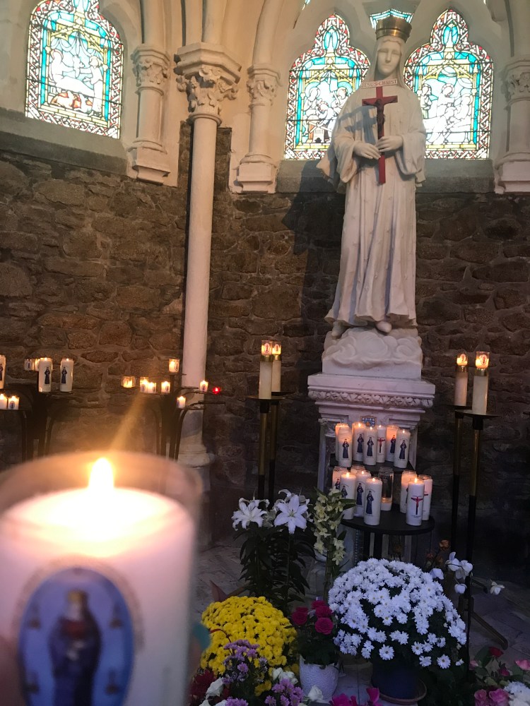 On entend parfois de certaines personnes : « pourquoi les catholiques prient Marie? » Ce n’est pas nous qui prions Marie, c’est Marie qui prie pour nous. La prière du « je vous salue Marie » nous rappelle que quand nous prions, nous ne sommes jamais seuls. Il n’y a pas la prière d’un dans sa chambre, d’un autre dans sa cuisine, d’eux dans l’église… Il y a une seule prière, une seule foi, une seule louange que l’Eglise tout entière adresse au Dieu unique. Quand nous prions, nous prions avec les saints et les saintes, avec les anges du ciel, avec la Sainte Vierge. Tout cela fait une immense chaîne de prière qu’on appelle la communion des saints. La vierge Marie n’est qu’un maillon de cette chaîne, le sublime maillon de cette chaîne. C’est pourquoi la prière avec Marie est autant puissante car c’est l’Eglise tout entière (du ciel et de la terre) qui prie à travers nous.